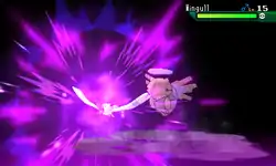 Lunala becomes surrounded in a swirl of purple energy and disappears. Moments later, it reappears behind the opponent and attacks them. | ||