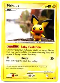 Pichu (Japanese: ピチュー Pichu) is a Lightning-type Basic Pokémon card. It was first released as part of the Mysterious Treasures expansion.