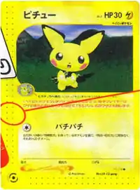- The initial Japanese release included 'electrical' (電気 (denki)) in Pichu's description. A rarer corrected version, nicknamed 'Dengeki Pichu', had this text changed to read 'electric shock' (でんげき (dengeki)) instead.