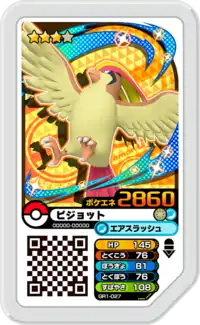 Pidgeot (Japanese: ピジョット Pigeot) is a Grade 3 Pokémon Ga-Olé disk. It is part of the first Grand Rush set.