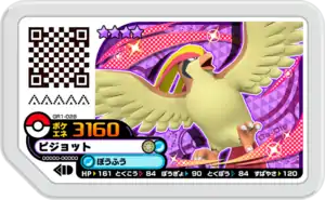 Pidgeot (Japanese: ピジョット Pigeot) is a Grade 4 Pokémon Ga-Olé disk. It is part of the first Grand Rush set.