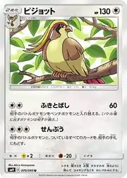Pidgeot (Japanese: ピジョット Pigeot) is a Colorless-type Stage 2 Pokémon card. It is part of the Team Up expansion.
