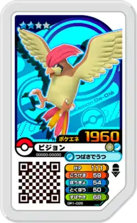 Pidgeotto (Japanese: ピジョン Pigeon) is a Grade 2 Pokémon Ga-Olé disk. It is part of the first Grand Rush set.