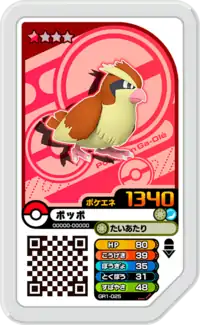 Pidgey (Japanese: ポッポ Poppo) is a Grade 1 Pokémon Ga-Olé disk. It is part of the first Grand Rush set.