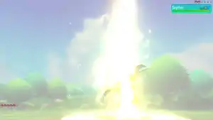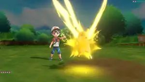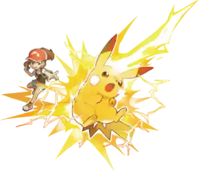 Pika Papow (Japanese: ピカピカサンダー Pikapika Thunder) is a damage-dealing Electric-type move introduced in Pokémon: Let's Go, Pikachu! and Let's Go, Eevee!. It is one of the signature moves and the partner power of the partner Pikachu. It acts as a fifth move that can only be used by shaking the game controller when prompted by an animated icon of Pikachu waving a Joycon.