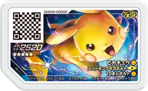 Pikachu (Japanese: ピカチュウ Pikachu) is a Grade 5 Pokémon Ga-Olé disk. It is part of the second Dash set.