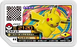 Pikachu (Japanese: ピカチュウ Pikachu) is a Grade 4 Pokémon Ga-Olé disk. It is part of the fifth Dash set.
