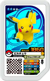 Pikachu (Japanese: ピカチュウ Pikachu) is a Grade 2 Pokémon Ga-Olé disk. It is part of the first Grand Rush set.