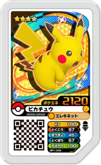 Pikachu (Japanese: ピカチュウ Pikachu) is a Grade 3 Pokémon Ga-Olé disk. It is part of the first Grand Rush set.