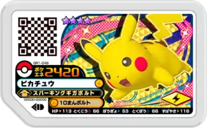 Pikachu (Japanese: ピカチュウ Pikachu) is a Grade 4 Pokémon Ga-Olé disk. It is part of the first Grand Rush set.