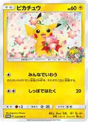 Pikachu (Japanese: ピカチュウ Pikachu) is a Lightning-type Basic Pokémon card. It is one of the SM-P Promotional cards.