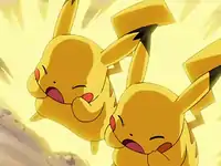 Pikachutwo (Japanese: ピカツー Pikatwo), also known as Cloned Pikachu, Mewtwo's Pikachu or Pikatwo, is an Electric-type Pokémon originally cloned from Ash's Pikachu. His name is never actually referred to in the anime (other than "Pikachu"), but it has been determined from the pattern of other clone Pokémon names (i.e. Mewtwo's name is a combination of Mew, the Pokémon it was originally cloned from, and the suffix "two". The same holds true for Bulbasaurtwo, Charmandertwo, and Squirtletwo). He is not to be confused with the Pikachutwo from The Birth of Mewtwo radio drama, who was among Mewtwo's friends that died.