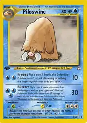 Piloswine (Japanese: イノムー Inomoo) is a Water-type Stage 1 Pokémon card. It is part of the Neo Genesis expansion.