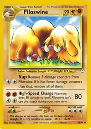 Piloswine (Japanese: イノムー Inomoo) is a Fighting-type Stage 1 Pokémon card. It is part of the Neo Revelation expansion.