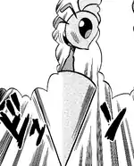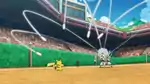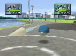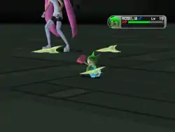 The ball on Mime Jr.'s head glows white. Its hands glow white and shoot white streams of pins at the opponent. | ||