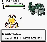 Pin Missile inflicts damage, hitting the target 2-5 times per use. There is a 37.5% chance that it will hit 2 times, a 37.5% chance that it will hit 3 times, a 12.5% chance that it will hit 4 times, and a 12.5% chance that it will hit 5 times. Although only the first strike can be a critical hit, each successive one will deal the same amount of damage.
