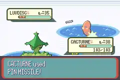 | Cacturne shoots white streams of pins from its spikes at the opponent. | |||