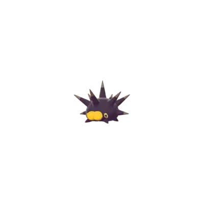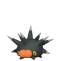 Pincurchin is a marine, sea urchin-like Pokémon with a black body. Its face has two yellow eyes with black, triangle-shaped pupils on each of them, and two yellow circular mouthparts. A line of sharp spines runs down its back, along with two other lines of two spines each on the side of its body. Each spine has a grayish tip which glows yellow when electric current runs through it.