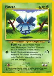 Pineco (Japanese: クヌギダマ Kunugidama) is a Grass-type Basic Pokémon card. It is part of the Neo Discovery expansion.