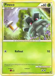 Rollout is a move in the Pokémon games that Pineco can learn via Move Tutor in Pokémon Emerald, Platinum, HeartGold, and SoulSilver. This card's Pokédex entry comes from Pokémon SoulSilver.