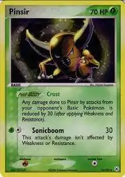 Pinsir (Japanese: カイロス Kailios) is a Grass-type Basic Pokémon card. It is part of the EX Hidden Legends expansion.