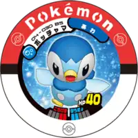 Piplup (Japanese: ポッチャマ Pochama) is a Pokémon Battrio puck. It is part of the Mysterious Mew expansion.