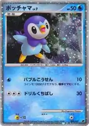 Piplup (Japanese: ポッチャマ Pochama) is a Water-type Basic Pokémon card. It is part of the 11th Movie Commemoration Set.