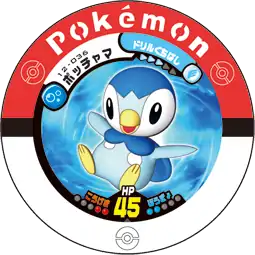 Piplup (Japanese: ポッチャマ Pochama) is a Pokémon Battrio puck. It is part of the Sky-Tearing Rayquaza expansion.