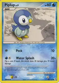 Piplup (Japanese: ポッチャマ Pochama) is a Water-type Basic Pokémon card. It was first released as part of the Diamond & Pearl expansion.