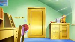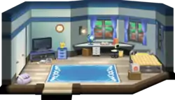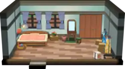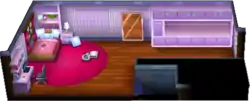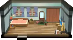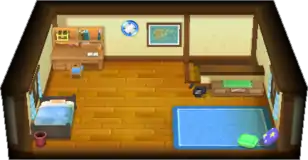 Unlike in previous games, the bedroom is not upstairs in a separate room, but simply partitioned from the main living area, as the player's house is only single-story. There is a table and a dresser in the top part of the room where the diplomas and trophies will be displayed if they have been awarded.