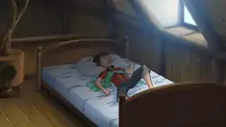 - If the player is a boy, a movie featuring a brown-haired boy waving a magic wand (French: "Un garçon aux cheveux brun brandit une baguette magique."), possibly a reference to Harry Potter.
