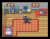 In Black and White, the first two Pokémon battles of the game take place within the bedroom, causing the room to fall into a state of disarray. The player's mother will later happily tidy the room, and it will be restored to its original condition after she gives the player Running Shoes on Route 2. The bedroom cannot be custom decorated, however, numerous decorations can still be obtained. When the Unova and National Pokédexes are completed, their respective diplomas will automatically be delivered to the house and placed on a table in the upper part of the bedroom. Three trophies can also be obtained by achieving high win streaks on the Battle Subway, and will automatically be placed on the table in the lower part of the room. A trophy will be awarded upon achieving a win streak of 49+ battles on the Super Single, Super Double, and Super Multi Lines respectively.