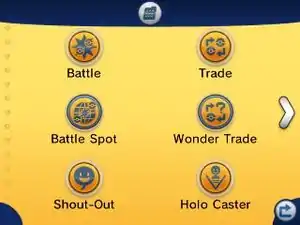 The Holo Caster is a Generation VI incarnation of the Xtransceiver, which consists of a holographic projection instead of a physical screen display. NPCs will occasionally use this to contact the player during the course of the game. Unlike its predecessor, the Holo Caster can also be used to broadcast special in-game and real world news announcements directly to the player. This includes updating the player on any recent StreetPass hits, upcoming events and competitions. It will periodically update automatically via StreetPass, or if the player chooses, may also be manually updated using an Internet connection and SpotPass as well.