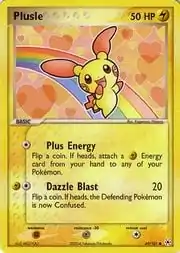 Plusle (Japanese: プラスル Prasle) is a Lightning-type Basic Pokémon card. It is part of the EX Hidden Legends expansion.