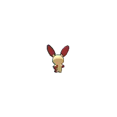 Plusle can create sparkly pom-poms by shorting out the electrical current in its palms. It uses these pom-poms to cheer on its teammates and will cry loudly if they lose. It climbs telephone poles to absorb electricity. It lives in grasslands and savannas.