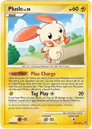 Once during your turn (before your attack), if any of your Pokémon were Knocked Out during your opponent's last turn, you may search your discard pile for up to 2 basic Energy cards, show them to your opponent, and put them into your hand. You can't use more than 1 Plus Charge Poké-Power each turn. This power can't be used if Plusle is affected by a Special Condition.