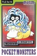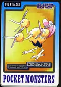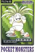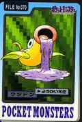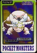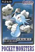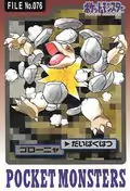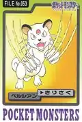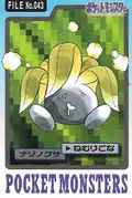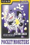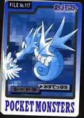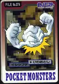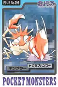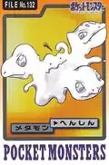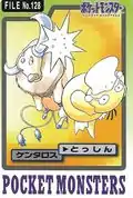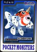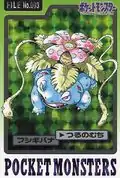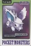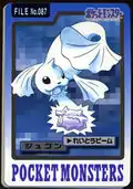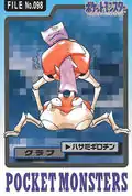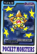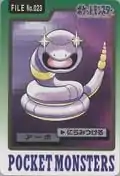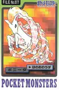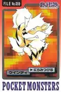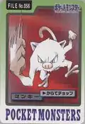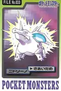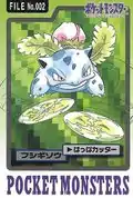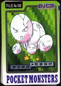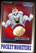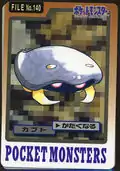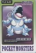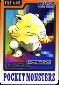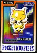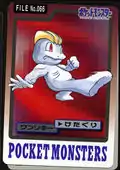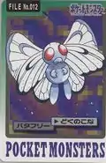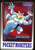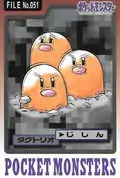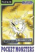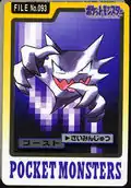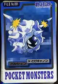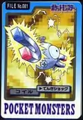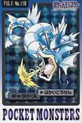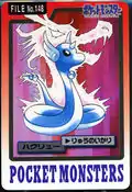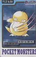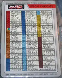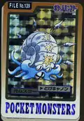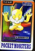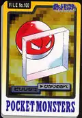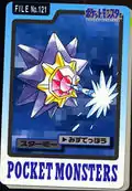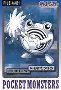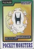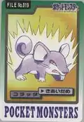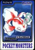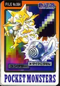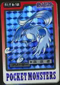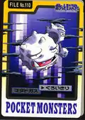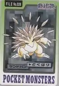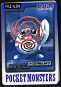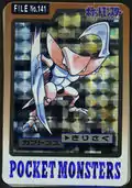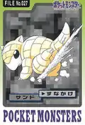 Pocket Monsters Carddass Trading Cards are a set of Pokémon-themed trading cards that were manufactured by Bandai Carddass in 1996 and 1997 in Japan, with all artwork drawn by Ken Sugimori. There are 151 standard cards and several special cards. The standard cards each feature a Pokémon from Generation I.