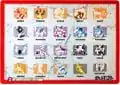 Later, a special promotional set of six "jumbo" cards were released that each contain removable stickers on one side, and contain Pokémon Trainer facts printed on the other side. Once all of the stickers are peeled from the front side, a single, large piece of artwork is revealed underneath on that side of the card.