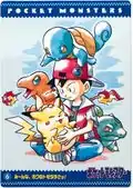 In April 1997 a promotional, rainbow-framed card featuring Red with the four starter Pokémon (including Pikachu) was released in Ito-Yokado stores in Japan. A second rainbow-framed card featuring both Red and Blue was released two months later in June 1997 exclusive to vending machines at Ito-Yokado stores.
