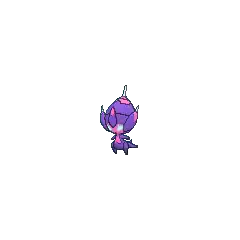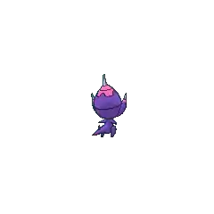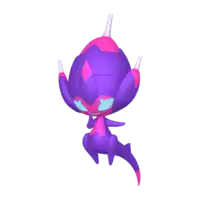 Poipole is a small, purple Ultra Beast. It has a bipedal build with a large head and relatively small limbs with no visible digits. On its head are three spikes: one in the front and one on each side. A single gray needle protrudes from the top of its head and there are additional needles in the spikes on the sides of its head. It has oval eyes with a single eyelash-like spike above each; its mouth and eyes give off a cyan glow. It has a long, tapering tail with a single spine in the middle. While most of its body is dark purple, it has several fuchsia markings: at the tip of each head-spike, on its chest, on top of its head, and on its face.