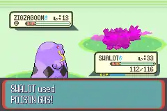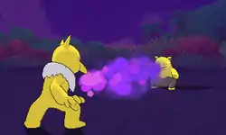 Weezing releases a thick brown toxic gas from its larger mouth at the opponent. | ||