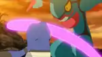 Toxicroak The large claw on one or each of Toxicroak's hands glows purple and it jabs the opponent with it or them, respectively.