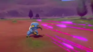 Croagunk Croagunk's fingertips on one or both of its hands glow purple and it jabs the opponent with it or them.