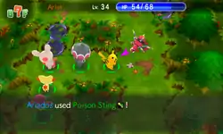 | Ariados fires multiple purple needles from its mouth at the opponent. | |||