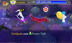 Scolipede's tails glow purple and Scolipede hits the opponent with them. | ||