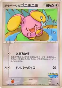 PokéPark's Whismur (Japanese: ポケパークのゴニョニョ PokéPark's Gonyonyo) is a Colorless-type Basic Pokémon card. It was first released as part of PokéPark Forest Premium File.