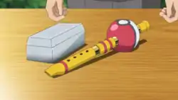 The Poké Flute (Japanese: ポケモンのふえ Pokémon Flute) is a Key Item introduced in Generation I. It has the appearance of a yellow recorder with a Poké Ball near the bottom.