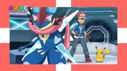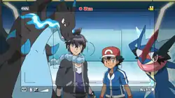 Features Ash, Alain, Ash's Greninja, and Alain's Charizard. |