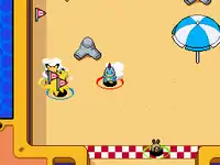 One Pokémon is controlled at a time. Flicking the stylus causes a Pokémon move in that direction (and also to face that direction, which is relevant for stealing flags). Flags will appear and re-appear on the field in pre-set positions, generally forming paths that go along the two sides of the sandbox, as well as up the center. There are also obstacles on the field, as well as parasols that sometimes hide flags under them. Pokémon collect flags by running into them, and can hold a maximum of nine at a time. After collecting flags, the Pokémon must return to the start area to tag off the next Pokémon and deposit their flags, which will not count towards the score unless this is done. Pokémon can also collide with each other. If a Pokémon rams an opponent from behind, the rammed Pokémon is stunned for a moment and gives up to two flags to the attacker (if a Pokémon does not have enough flags, all its flags are given). If time runs out as a Pokémon is depositing its flags, all the flags will still count towards the score. This event lasts for 60 seconds.