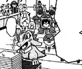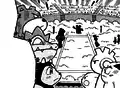 The Pokéathlon appeared in the first chapter of Pocket Monsters HGSS. Unlike the games, Professor Elm was in charge of the Pokéathlon instead of Maximo.